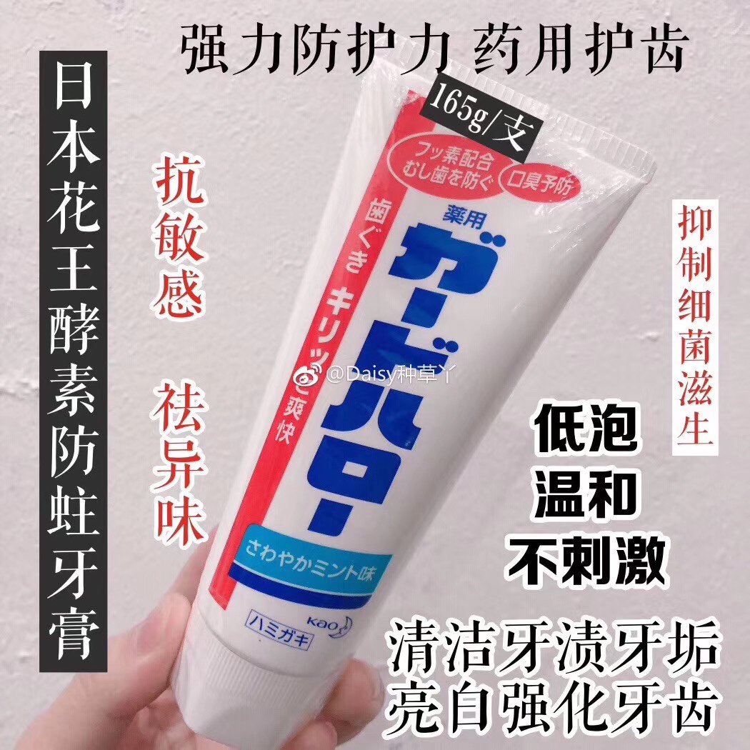 酵素美白杀菌消炎去除牙垢口臭薄荷/花王灭菌酵素牙膏(花王大白牙膏)柔和的薄荷香味,去除口腔异味,有效去除咖啡,红茶等带色饮料污渍,深度美白牙齿。含薄荷成分采用全密封包装,165g含量!